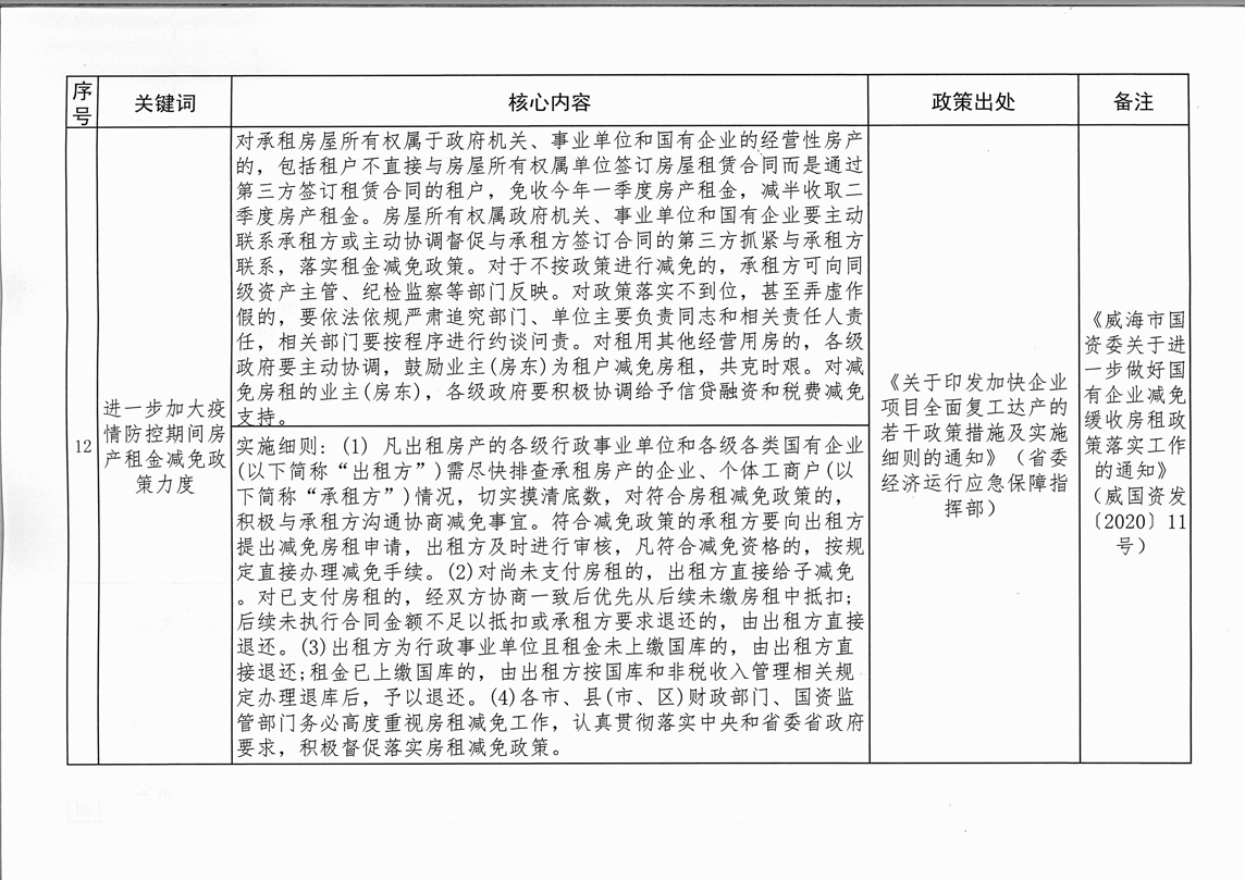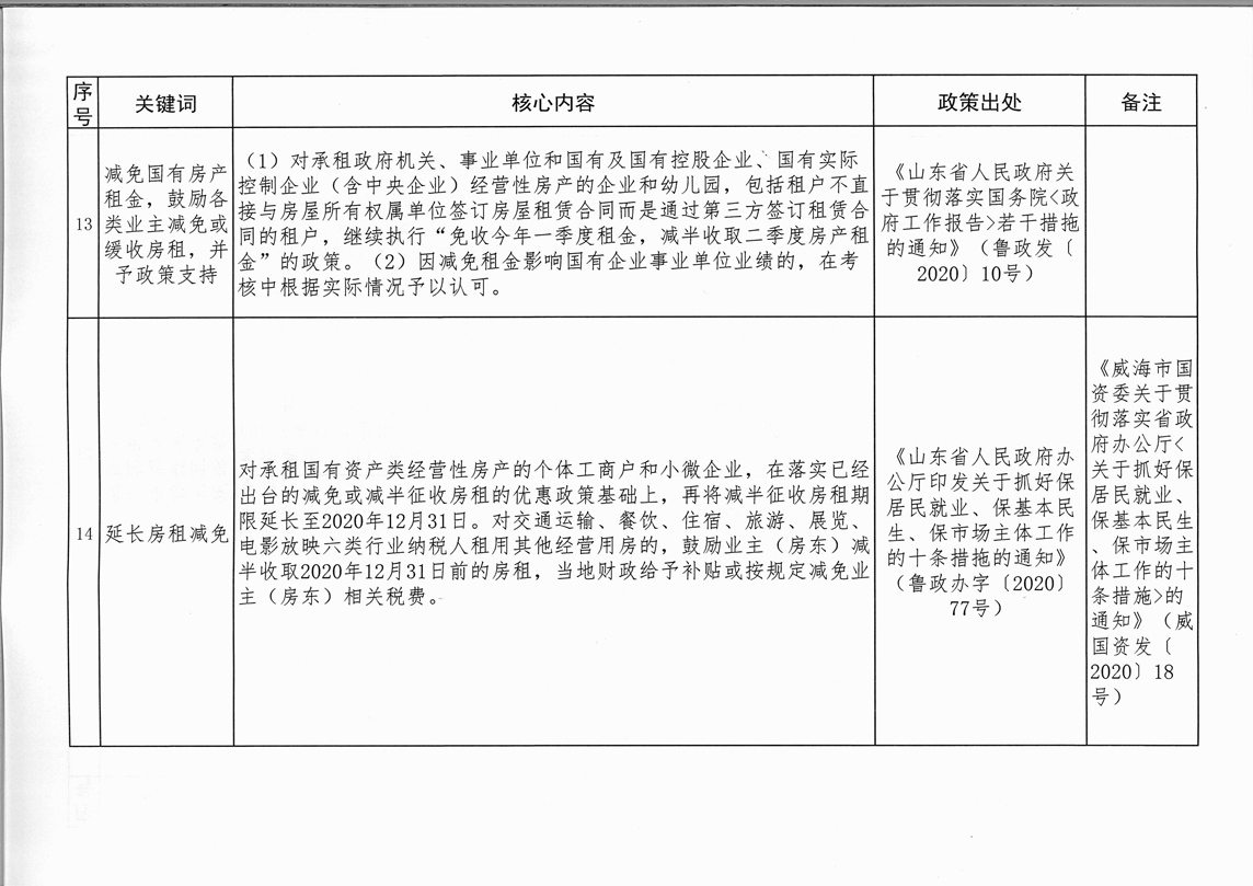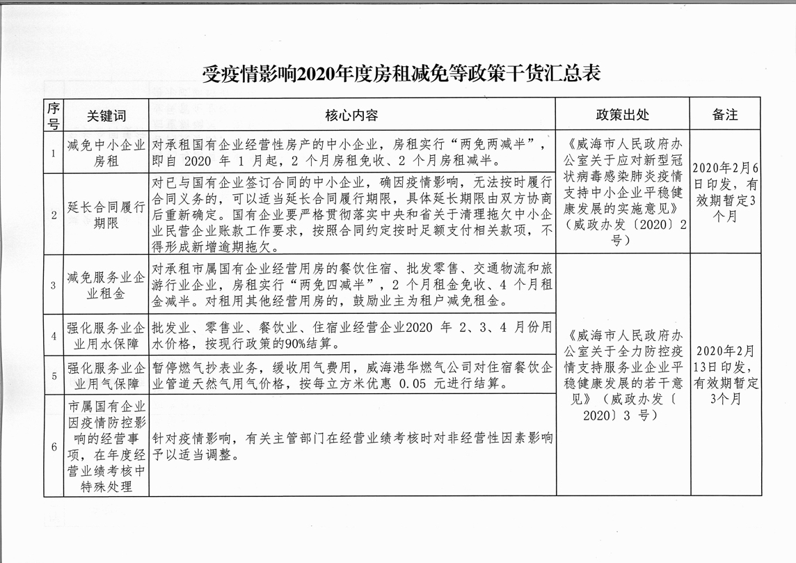 為全面落實“六穩(wěn)”、“六?!比蝿眨M一步推動國有企業(yè)房租減免政策落地落實,現(xiàn)將《受疫情影響2020年度房租減免等政策干貨匯總表》及監(jiān)督投訴電話予以公告。