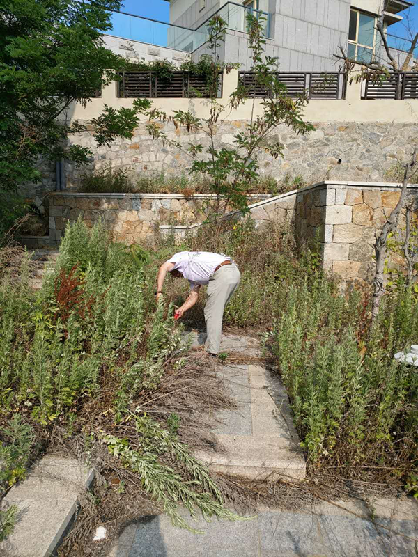 前幾天,物管中心去查看一處轉(zhuǎn)交過來的資產(chǎn),一進(jìn)院子,雜草叢生。唐建民一邊說著:“這哪像一戶人家?!币贿厪能嚿夏贸鲆恢患舳嗟募舻叮兔爸胰帐帐捌痣s草來。