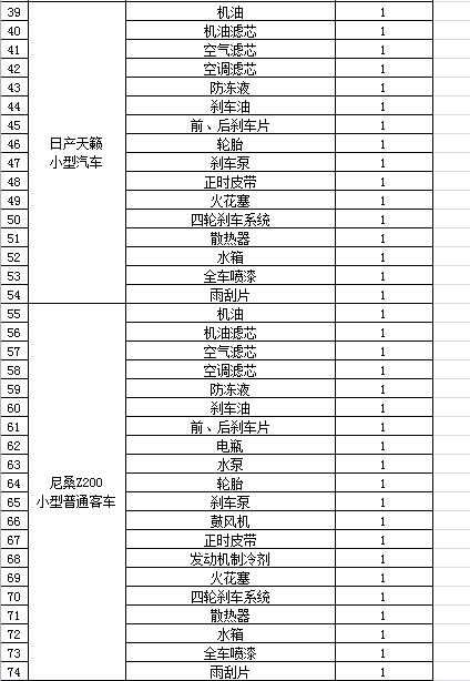 (4)采購內(nèi)容:威海城建集團(tuán)10輛公車定點維修保養(yǎng)等服務(wù)內(nèi)容,采購清單詳見附件。
